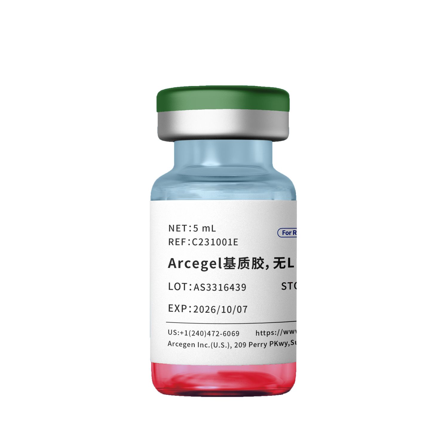 Arcegel Matrix, LDEV-Free基质胶是从富含胞外基质蛋白的 EHS 小鼠肿瘤中提取出来的可溶性基底膜制备物,其主要成分由层粘连蛋白,Ⅳ型胶原,硫酸乙酰肝素蛋白聚糖(HSPG)和巢蛋白等组成,还包含生长因子如 TGF-beta、EGF、IGF、FGF、组织纤溶酶原激活物和 EHS 肿瘤自身含有的其他生长因子。在室温条件下,聚合形成具有生物学活性的三维基质,模拟体内细胞基底膜的结构、组成、物理特性和功能,有利于体外细胞的培养和分化,可用于对细胞形态、生化功能、迁移、侵袭和基因表达等的研究。